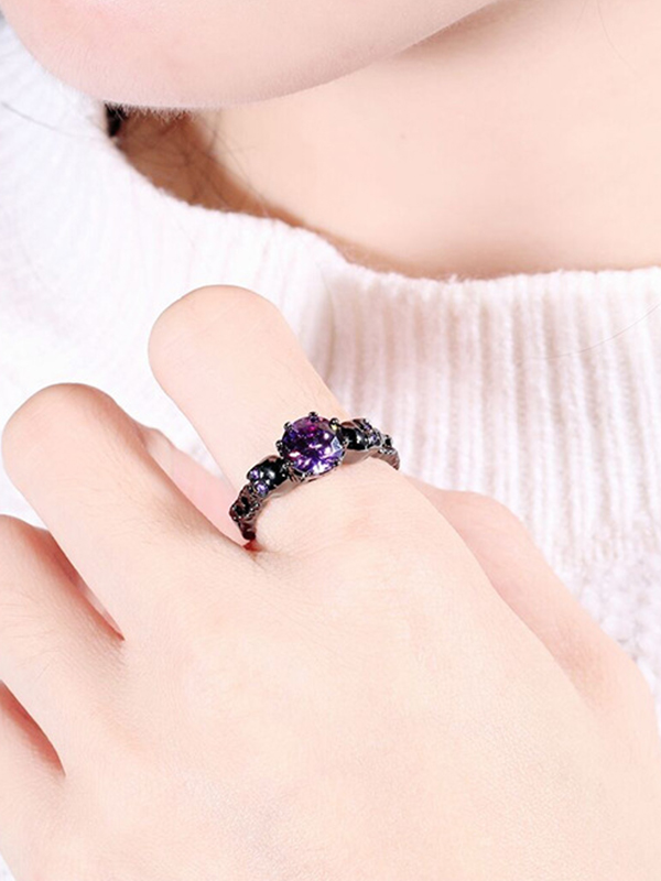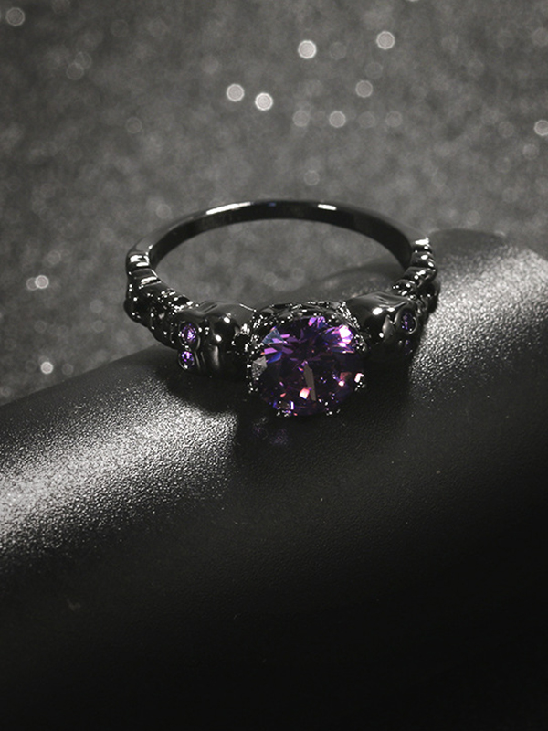 Punk Skull Purple Zircon Ring
