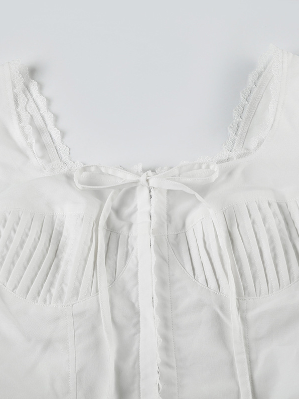 Square Neck Lace Stitching Bowknot Slim Tank Top