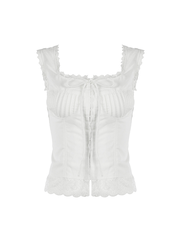 Be the first to review “Square Neck Lace Stitching Bowknot Slim Tank Top”