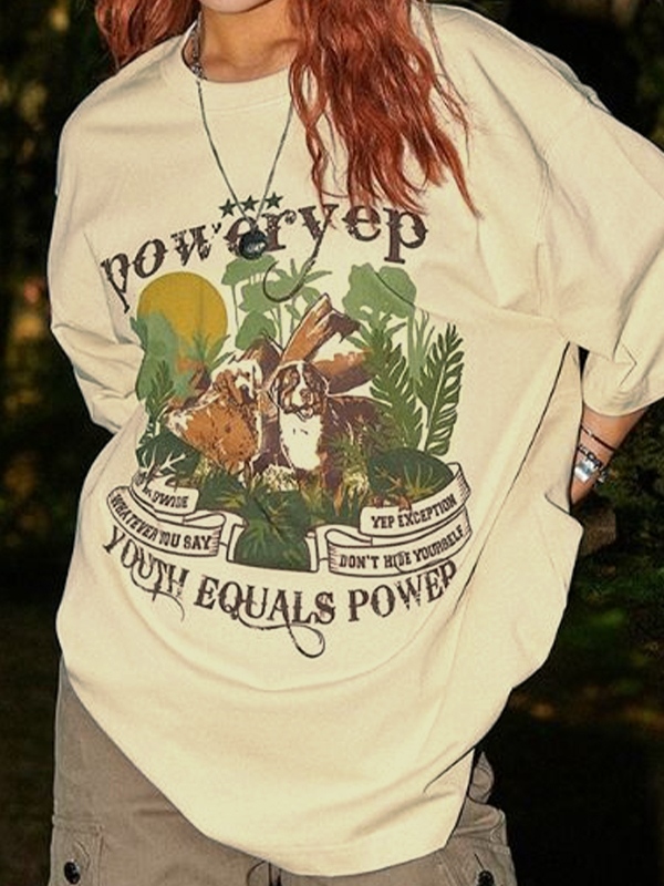 Vintage Dog Print Half Sleeve Oversized Short Sleeve Tee