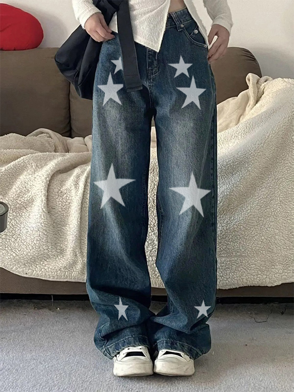 Trendy Design: The jeans feature a unique star print, adding a vintage and Y2K touch to your outfit.
