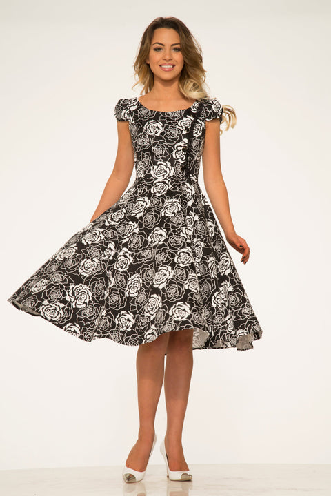 Black&White Rose Swing Dress