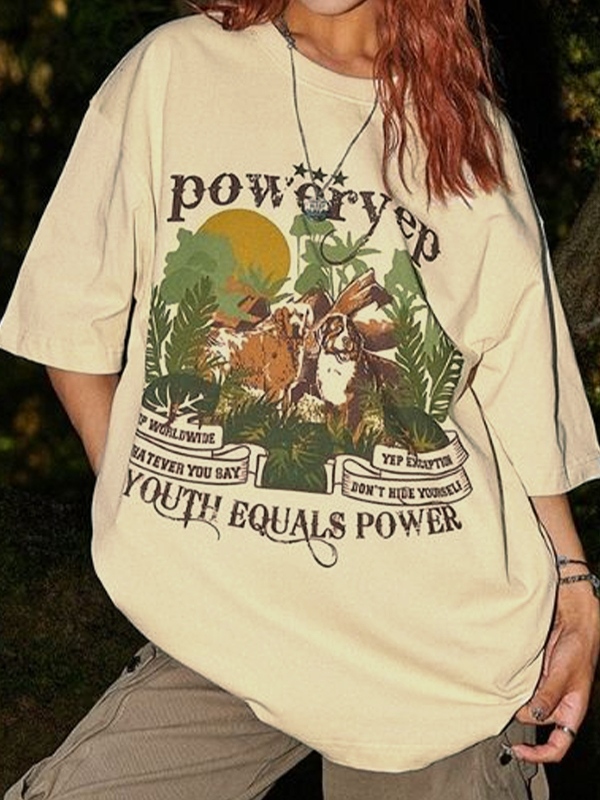 Vintage Dog Print Half Sleeve Oversized Short Sleeve Tee