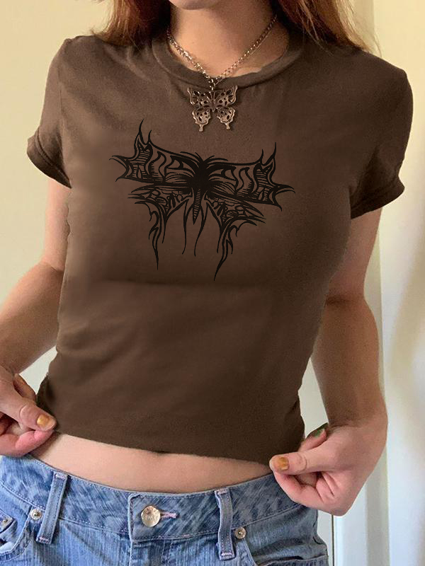 One Shoulder Fake Two Piece Print Long Sleeve Tee